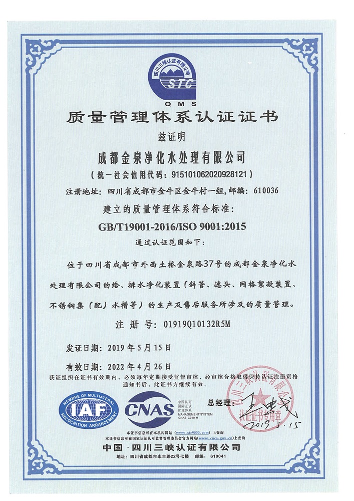 質(zhì)量認(rèn)證證書原件(2022年4月26日到期)